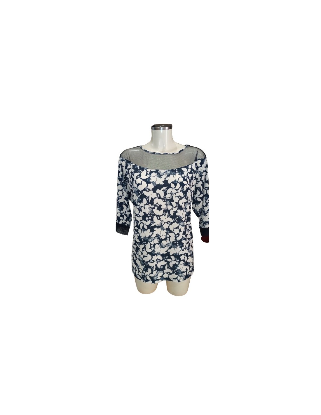 Maglia fantasia, in viscosa con collo e maniche in tulle, Alma Righi Tg 53(