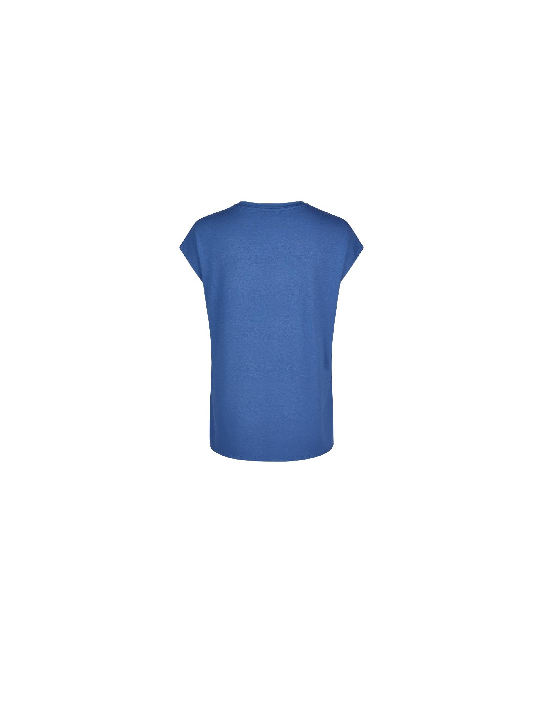 Si tratta di una T-shirt a maniche cortissime con uno scollo rotondo rifinito da un bordo blu a contrasto.