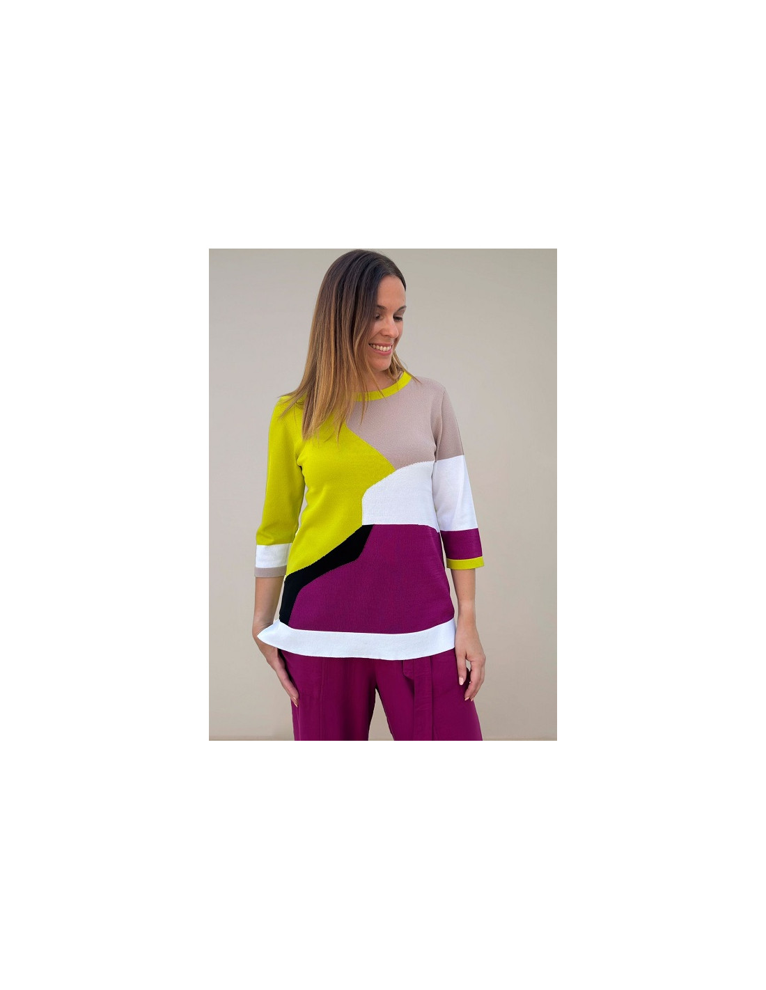 Maniche a tre quarti che colpisce subito per il suo design color-block geometrico. I polsini sono rifiniti con bande di colore coordinate.