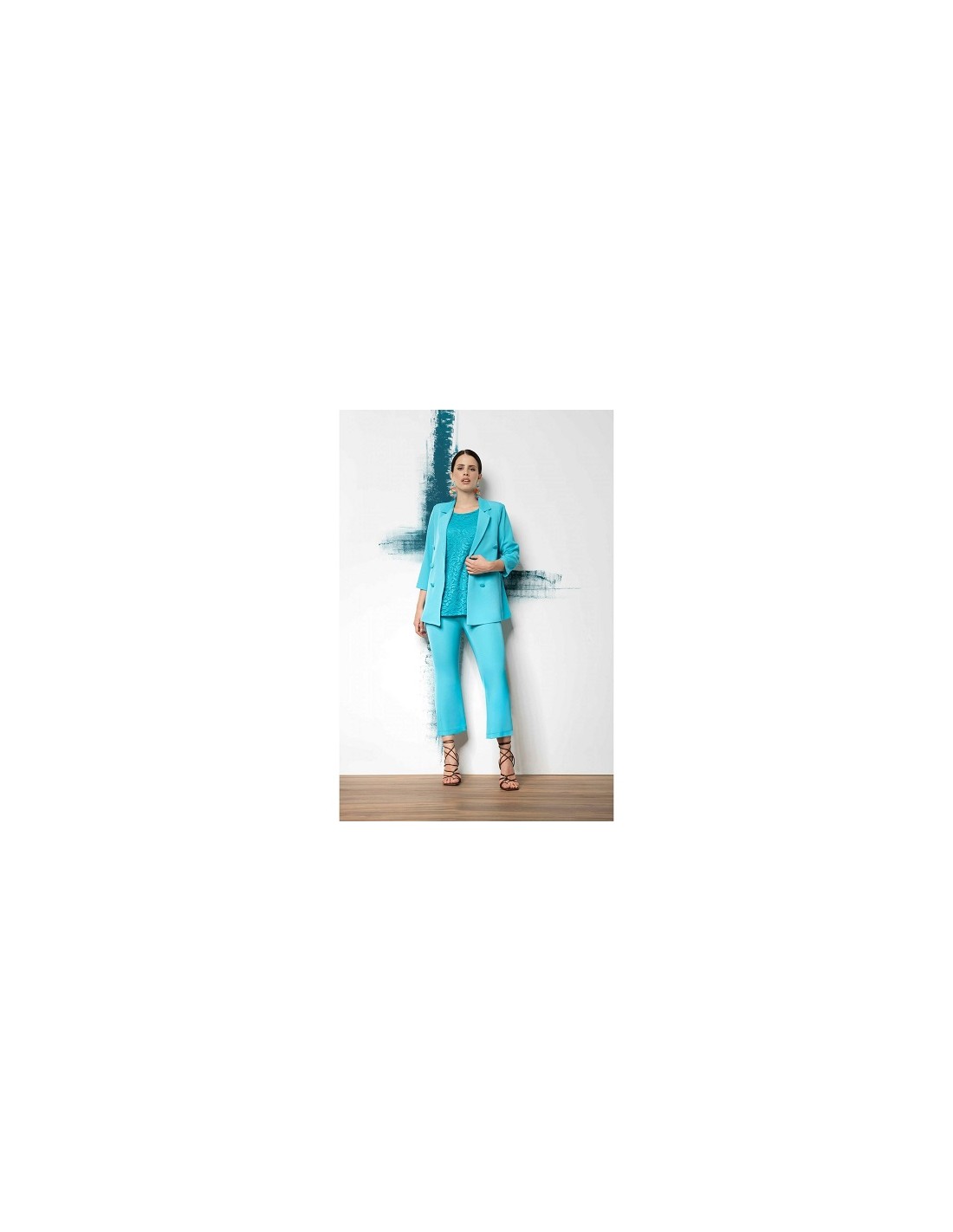 Pantalone a zampetta, top merletto e blazer finto doppiopetto, Quiin 21 Tg S(46-48) Tg L(54-56)