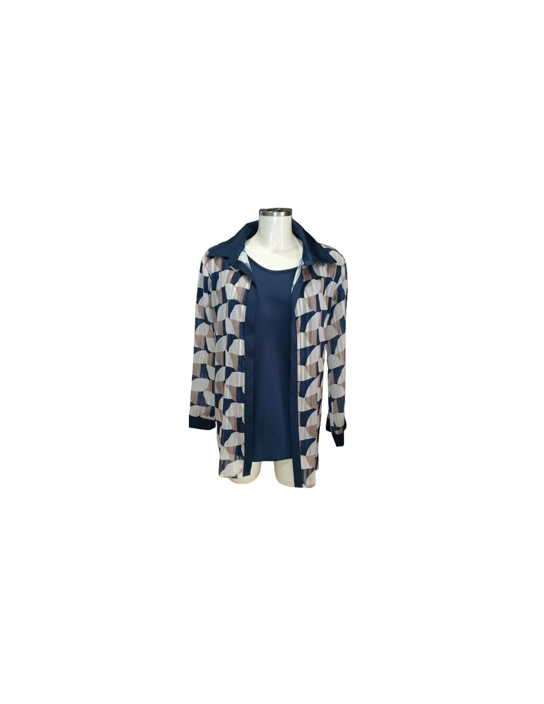 Twin set composto da casacca con manica scesa e spolverino camicia, fantasia con filo di lurex, Lybido Tg 45(52)
